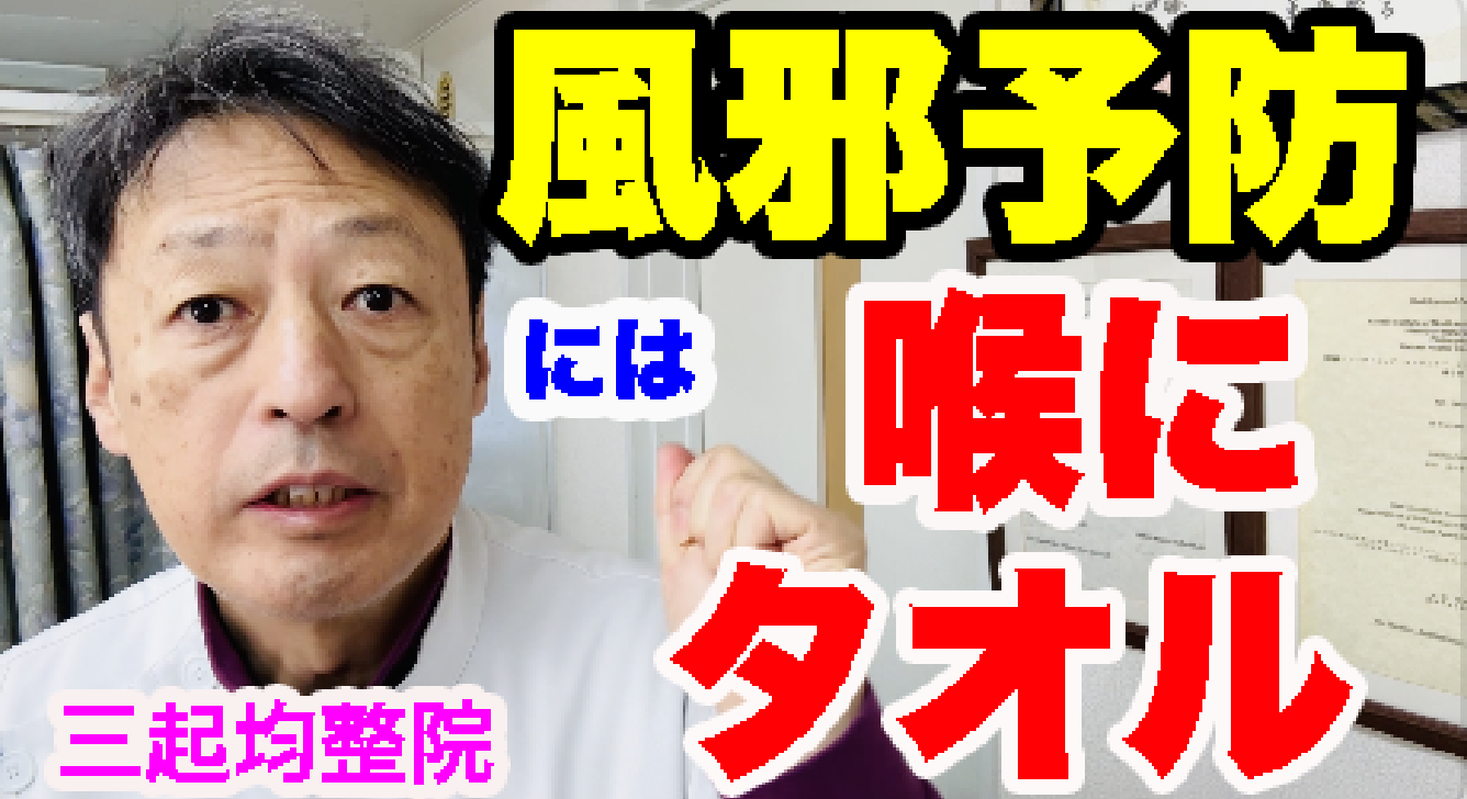 今日の健康情報は「インフルエンザなど風邪の予防にはタオルを巻いて寝ましょう」