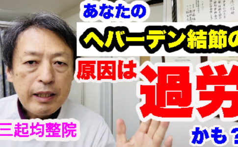 ヘバーデン結節 あなたのヘバーデン結節の原因は過労かも? 2025.11.11 おはようございます。 三起均整院の筒井です。 今日の健康情報は【あなたのヘバーデン結節の原因は過労かも】 ヘバーデン結節は、指の第一関節に痛み・腫れ・変形などが起こる病気で、現代医学では「治せない不治の病」と言われていま...